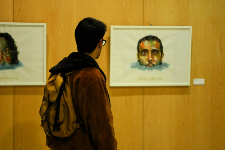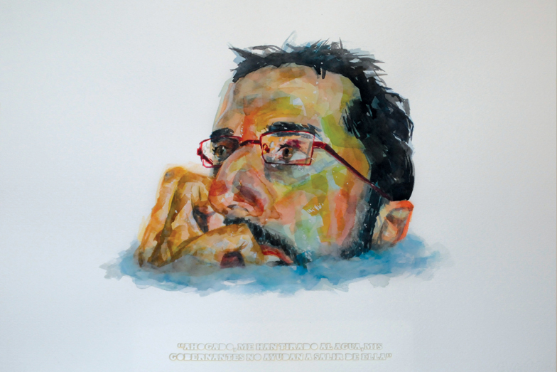 "Hasta el cuello" | Acuarela y corte láser | 50 x 70 cm. | + info